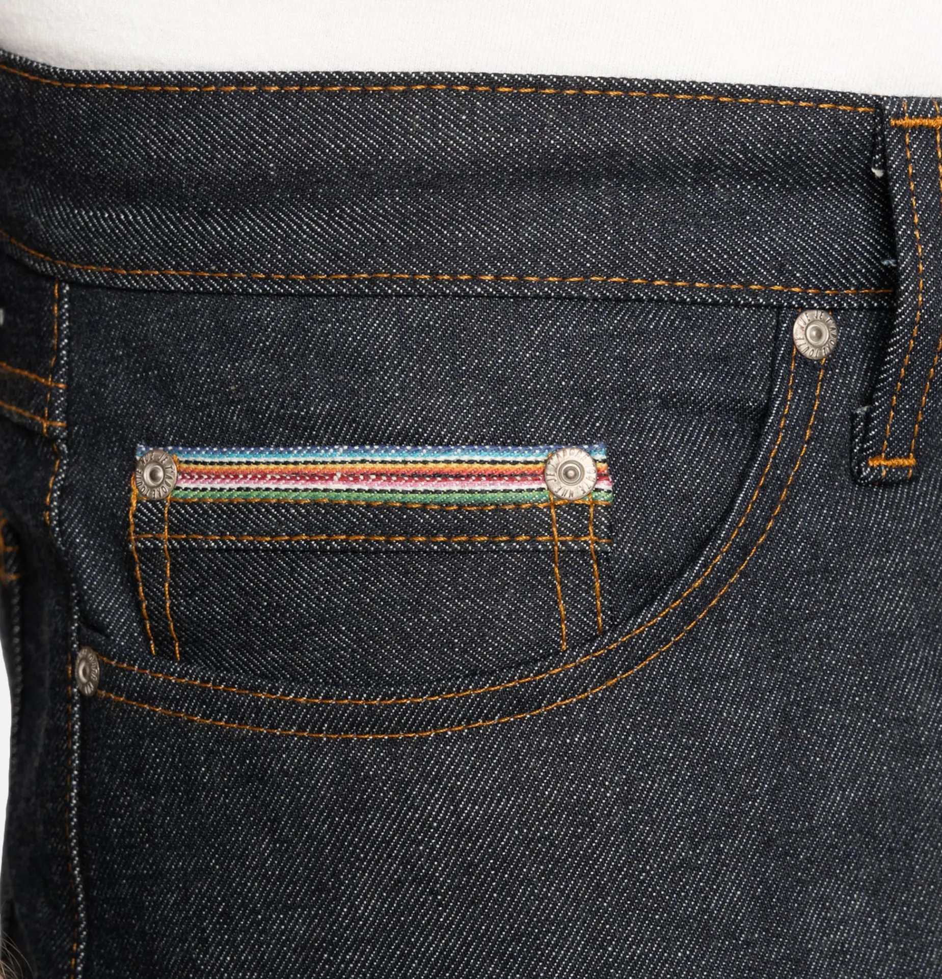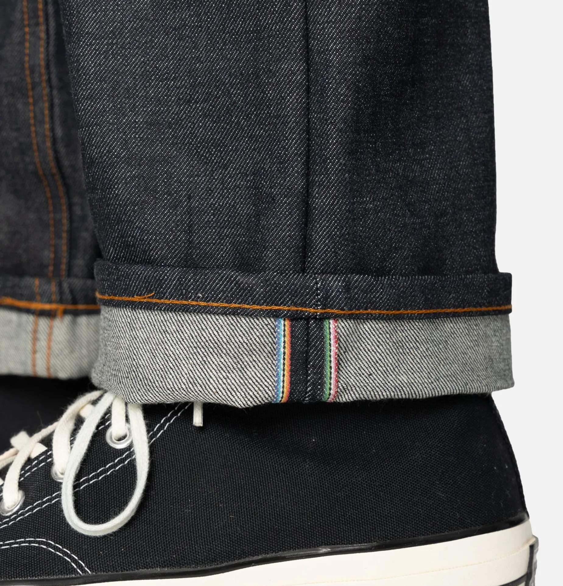 Denim japonais selvedge 12,5 oz, tissé à Okayama, au Japon, à partir de 100 % de coton upland mexicain.